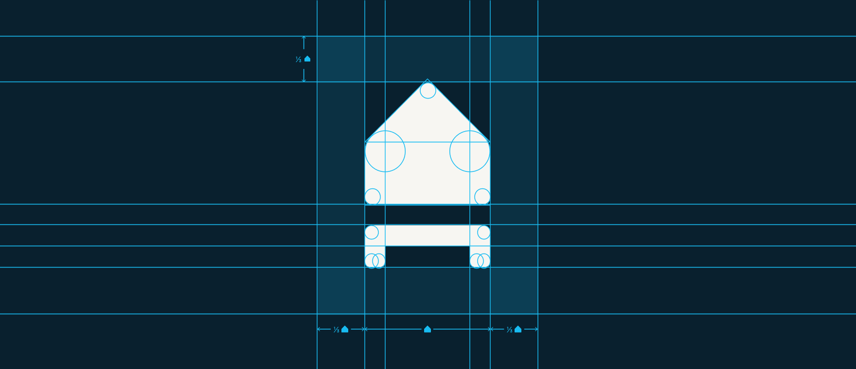 In the case of the Open Home Foundation logomark, the house shape is supported by a rectangular platform with two solid dark blue “legs”, symbolizing its foundations (and our foundation!). This connection to the ground represents the stability and structure we aim to provide via our projects and principles.